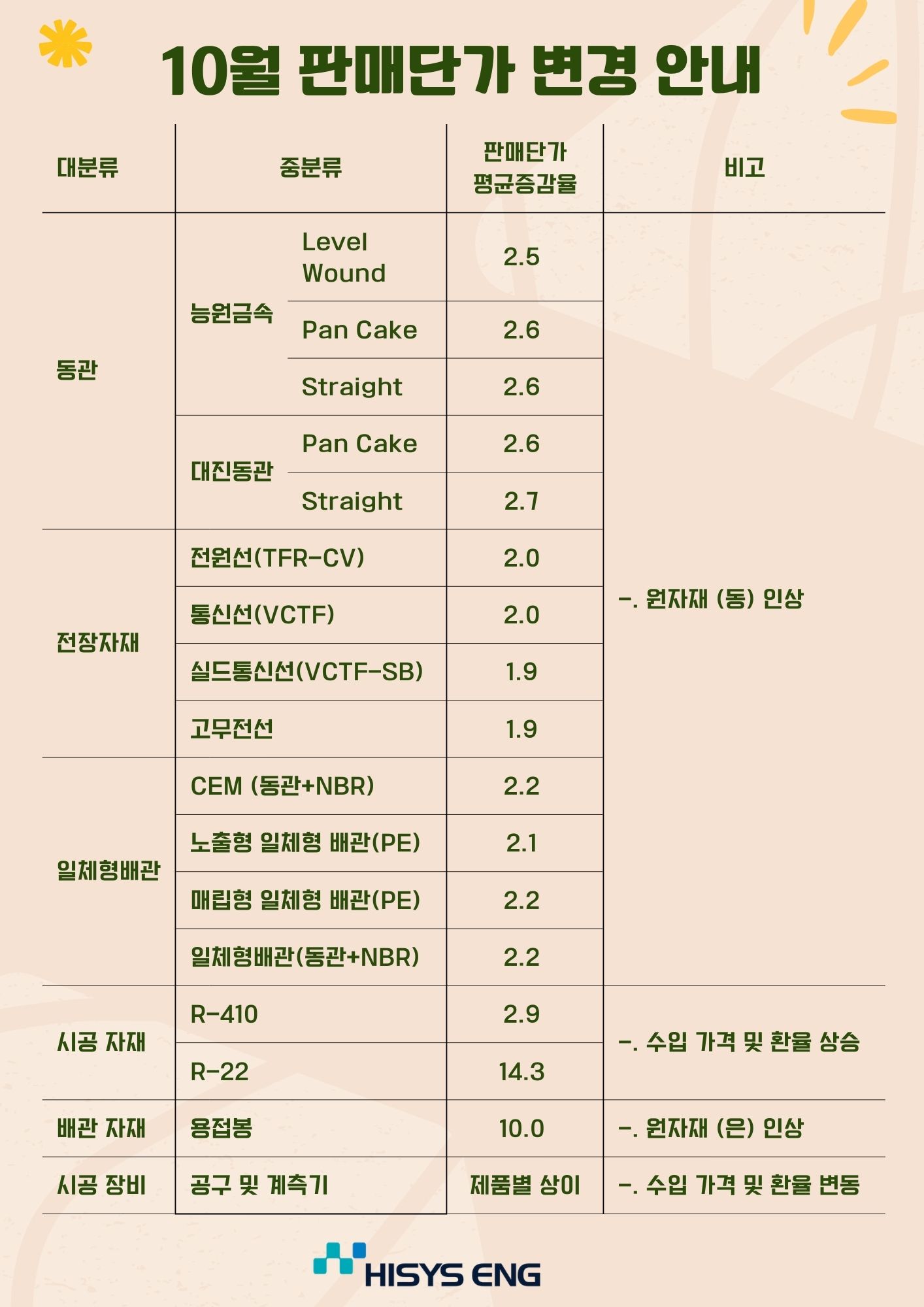 2025년 10월 판매단가 변경 안내